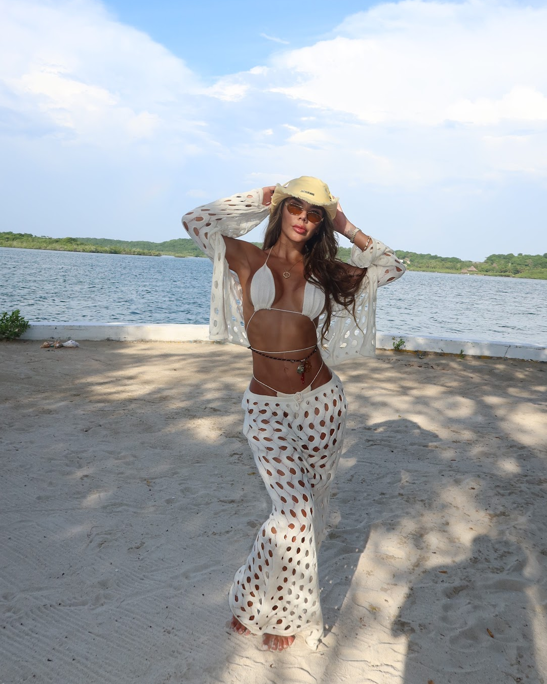 Hermoso set tejido, que incluye vestido de baño.